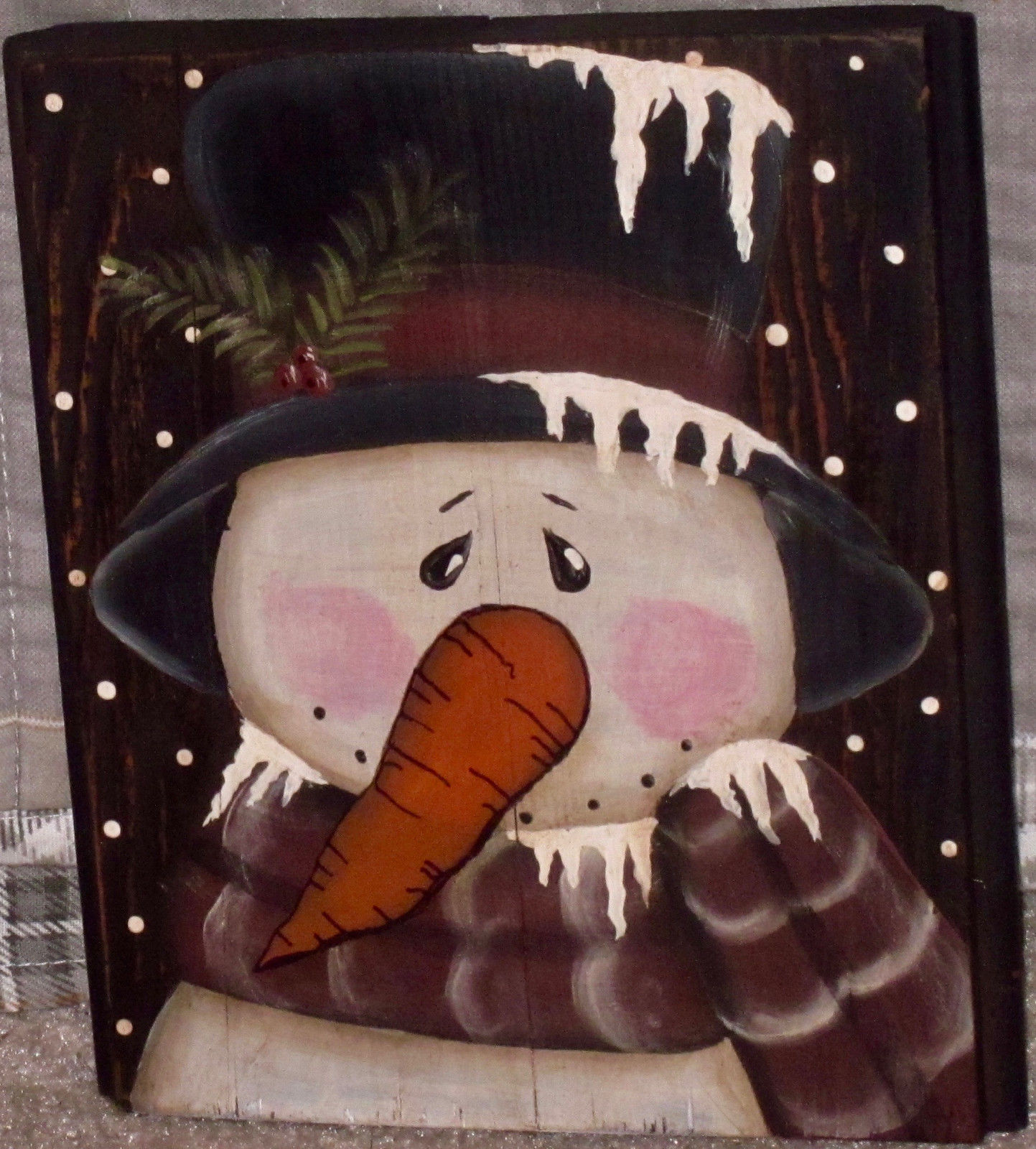 Title (ebay affiliate link): *~*PRIMITIVE*~* HP FOLK ART PRIM SNOWMEN *~* WINTER *~* RECLAIMED WOOD