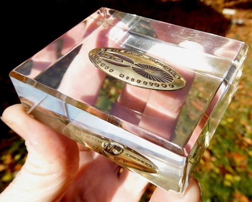 Title (ebay affiliate link): Vintage 1958 GENERAL MOTORS ~ 50th Anniversary PAPER WEIGHT ~ LUCITE Golden Mile