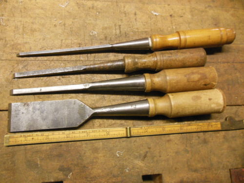 vintage square edge socket chisel lot Buck G I Mix other old wood carving tool