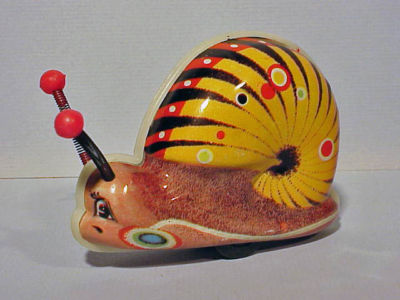 VINTAGE 60'S TIN LITHO WINDUP SNAIL JAPAN.
