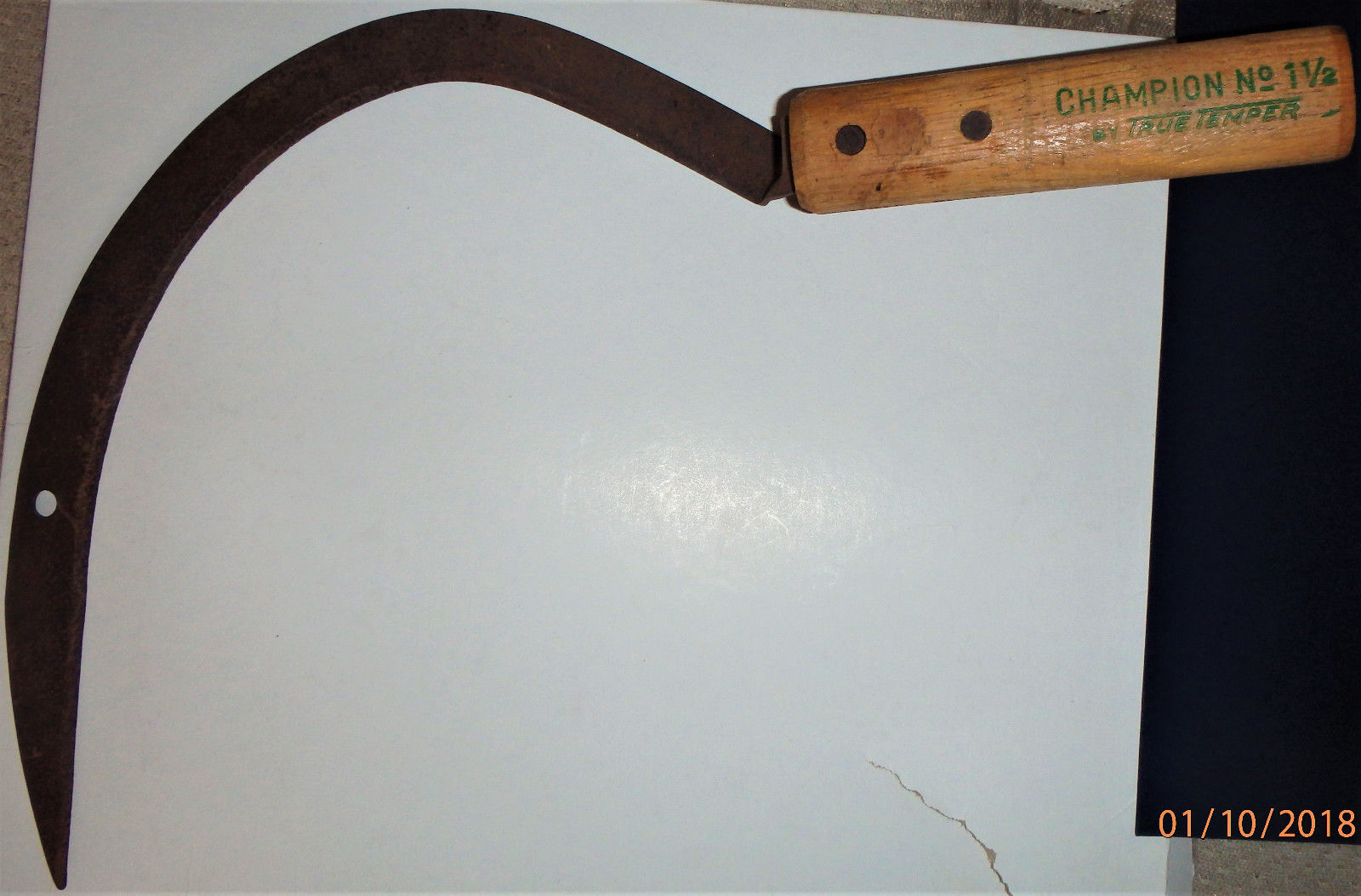 Title (ebay affiliate link): WOODEN HANDLE VINTAGE CHAMPION 1 1/2 TRUE TEMPER SICKLE CORN KNIFE HAND SCYTHE