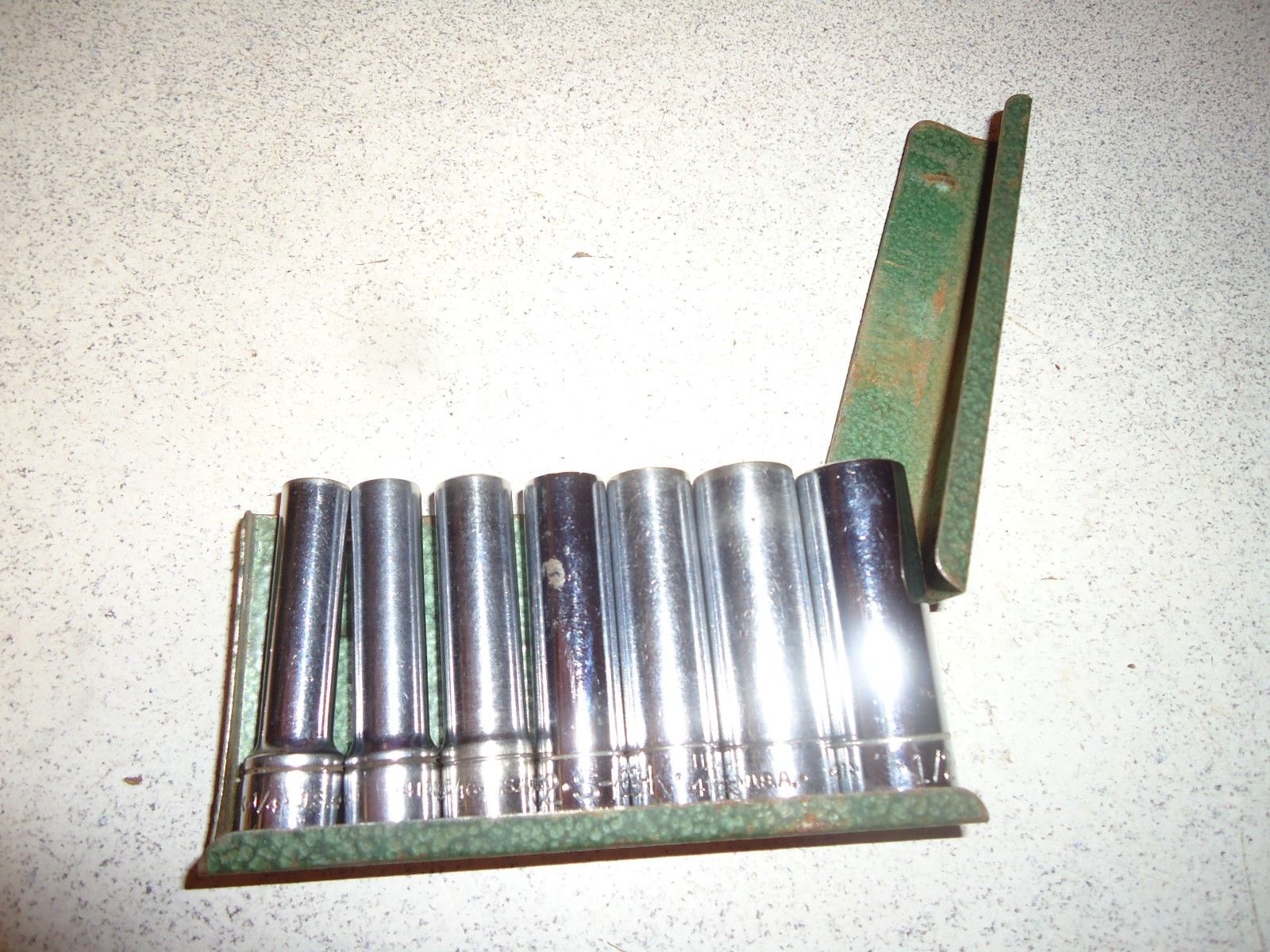 Title (ebay affiliate link): Vintage SK S-K Tool 1/4" Dr. 7 pc. SAE Deep Socket Set w/Green Metal Holder USA