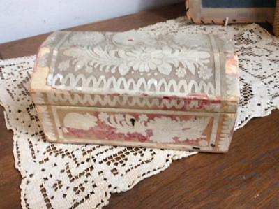Antique Folk Art Wood Box ~ Primitive Naive Drawing Carving Plaster Relief