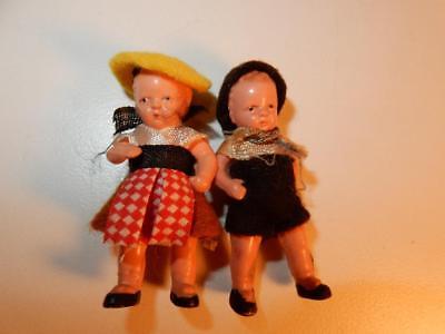 Antique German TINY CELLULOID BOY GIRL COUPLE DOLL SOUVENIR LOT 2" ADORABLE