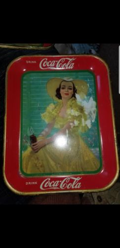 Title (ebay affiliate link): Vintage 1938 COCA COLA Metal Serving Tray Girl in Yellow Dress & Hat Coke