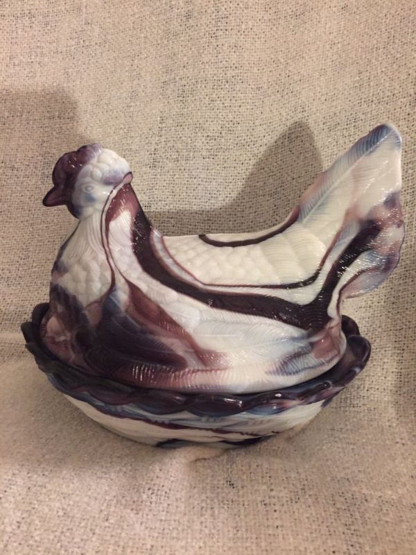 Title (ebay affiliate link): LG Wright Purple Slag Marble Milk Glass Chicken Hen on Nest Covered Dish
