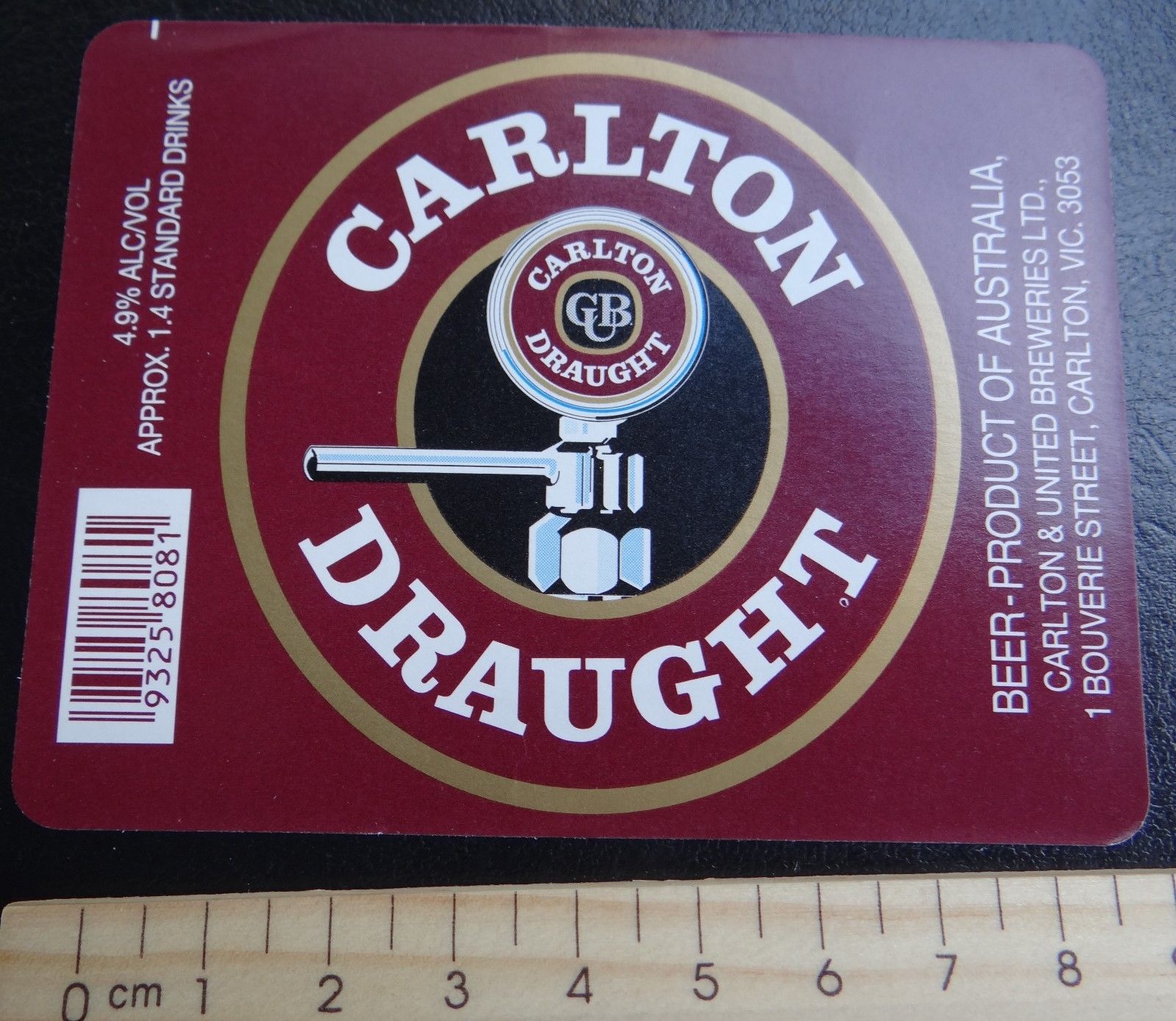 1 x CARLTON DRAUGHT BEER AUSTRALIA BEER LABEL