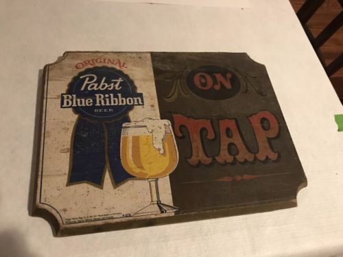 Title (ebay affiliate link): VINTAGE PABST BLUE RIBBON WOOD BAR SIGN "On Tap"