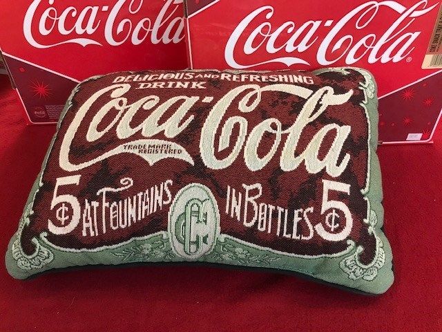 Title (ebay affiliate link): Coca Cola Vintage Look Pillow Red Green White - Decorative Coke 5 Cents