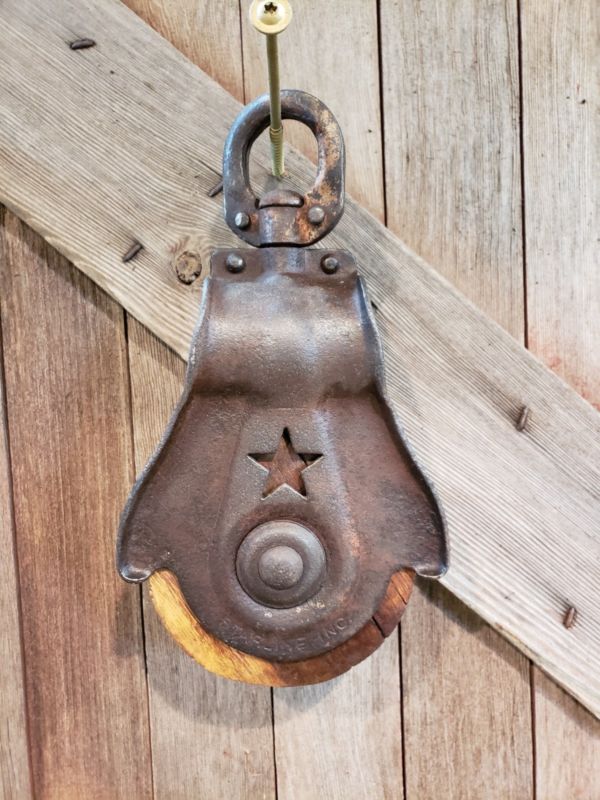 Title (ebay affiliate link): Antique Vintage Cast Iron & Wood Starline Barn Pulley Old Tool Farm loft rope