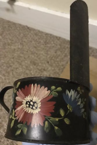 Title (ebay affiliate link): Antique Tin Tole Painted Oil Lamp with Attached Wall Mount-painted Flowers