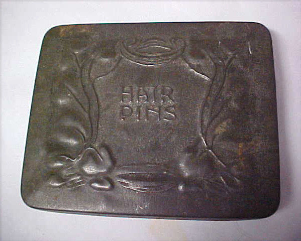 Title (ebay affiliate link): Vintage 1910s 1920s Hair Pins Art Nouveau Deco Metal Tin Box & Pins