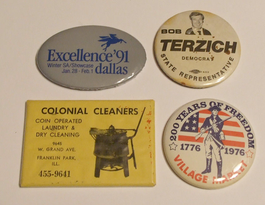 4 VINTAGE ADVERTISING & POLITICAL HAND / POCKET MIRRORS