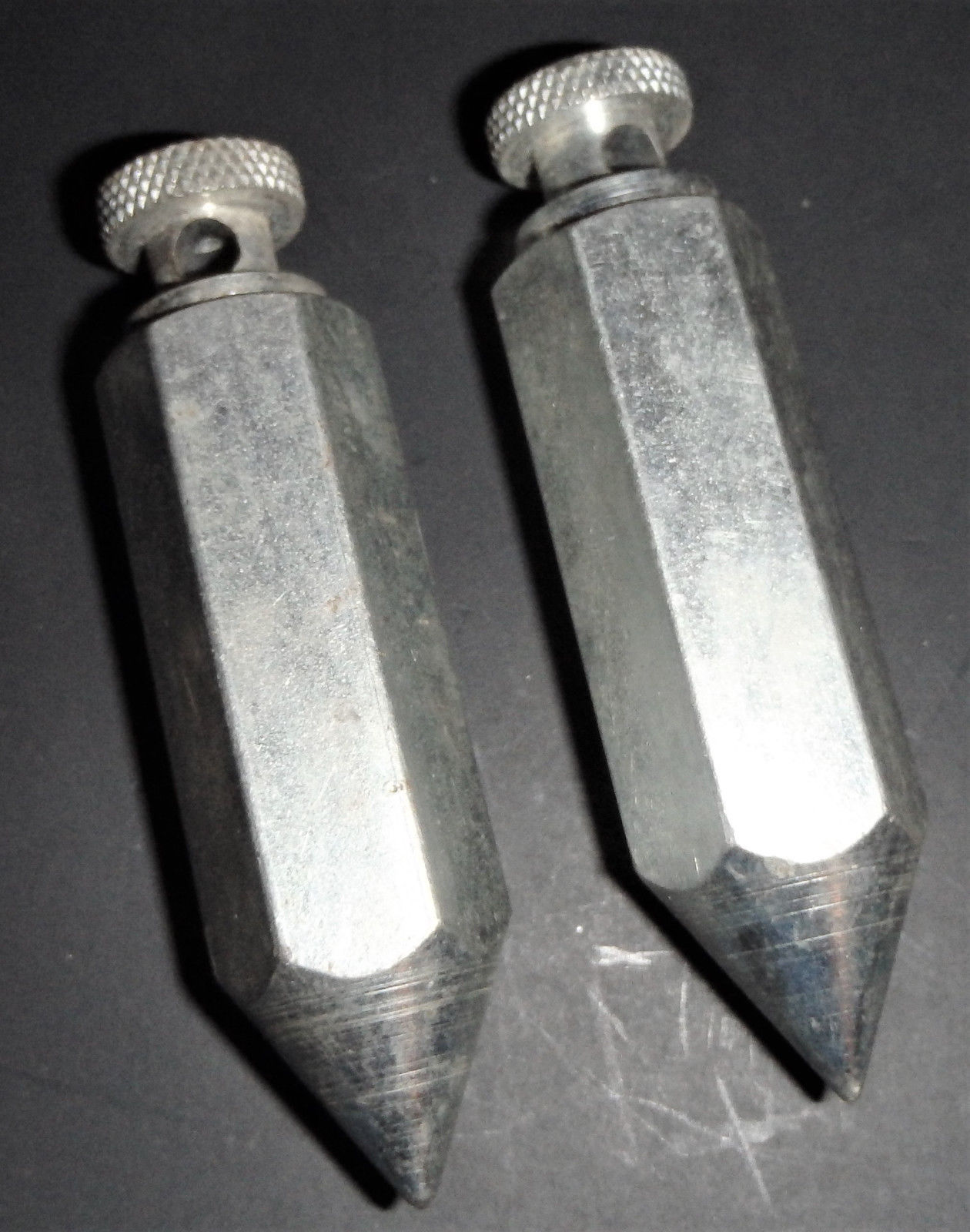 2, VINTAGE UNKNOWN MAKER SOLID STEEL PLUMB BOBS 5 OZ.