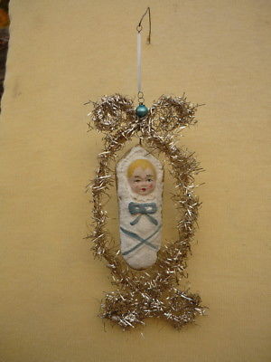 Title (ebay affiliate link): VTG.PAPIER BABY CHRISTMAS TREE ORNAMENT IN TINSEL ROUND