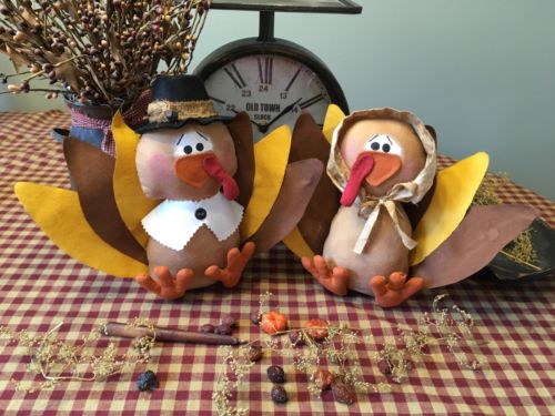Title (ebay affiliate link): Prim* Hand-crafted* Turkey Pilgrim Couple* Shelf Sitters* Ornies* Thanksgiving