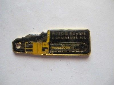 Title (ebay affiliate link): Pride Mowers & Chainsaws, McCulloch - Australia 1980s? Vintage Metal Keyring