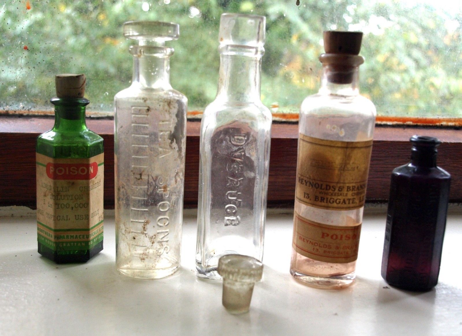VINTAGE DENTAL MEDICAL BOTTLES. X5
