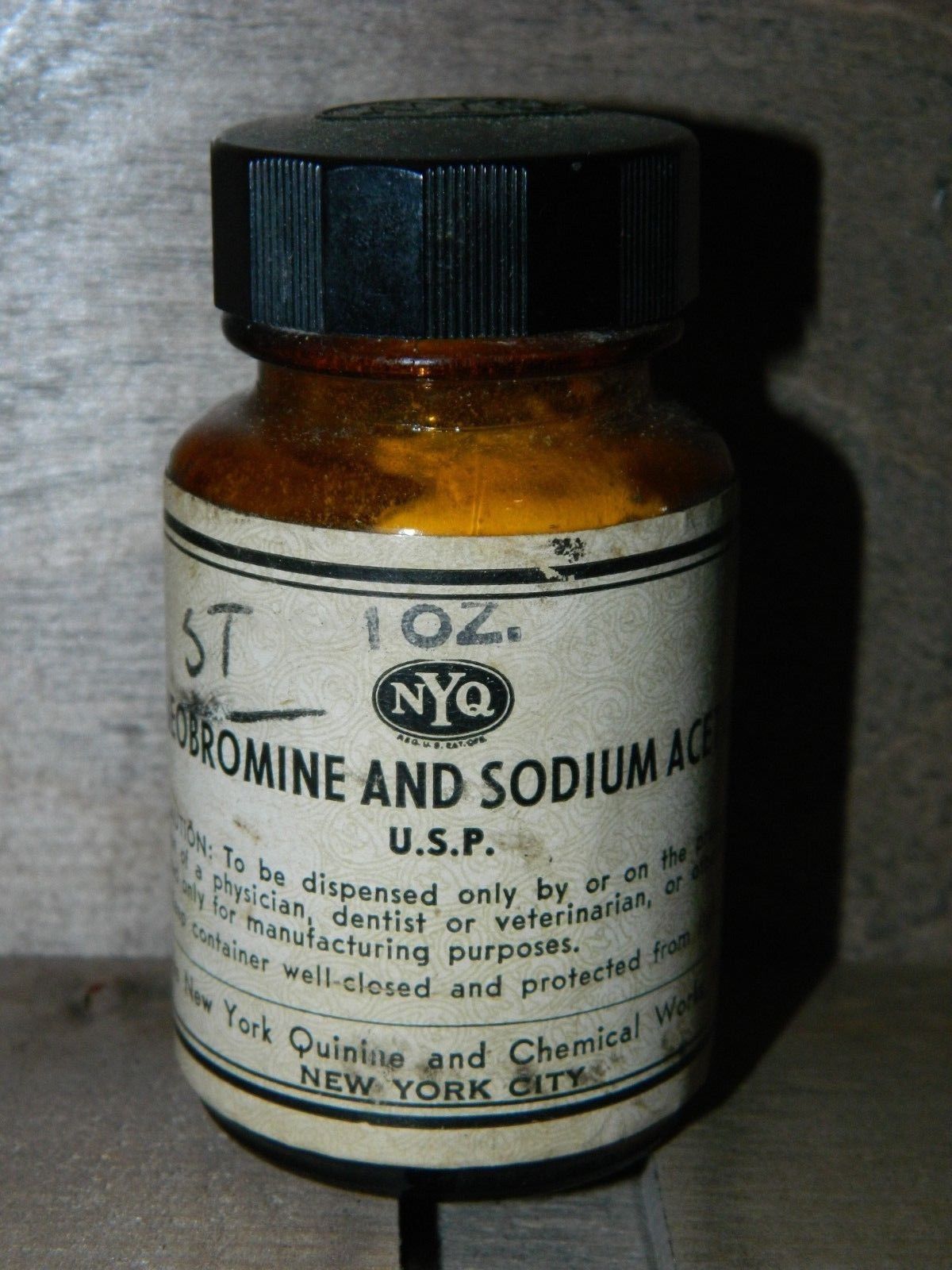 Vtg Apothecary Pharmacy Advertising Glass Jar NYQ Theobroine and Sodium Acetate