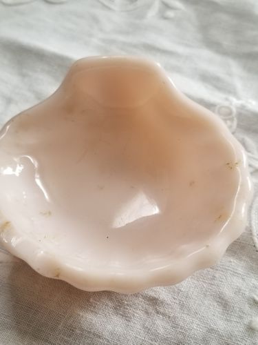 VTG PINK MILKGLASS 3 FTD CLAMSHELL TRINKET SOAP DISH