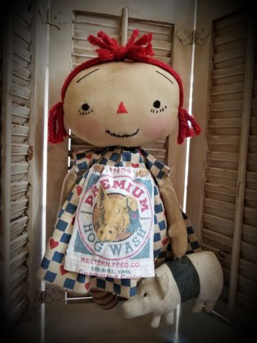 Primitive Raggedy Ann Doll w/ Pig ~ Annie ~