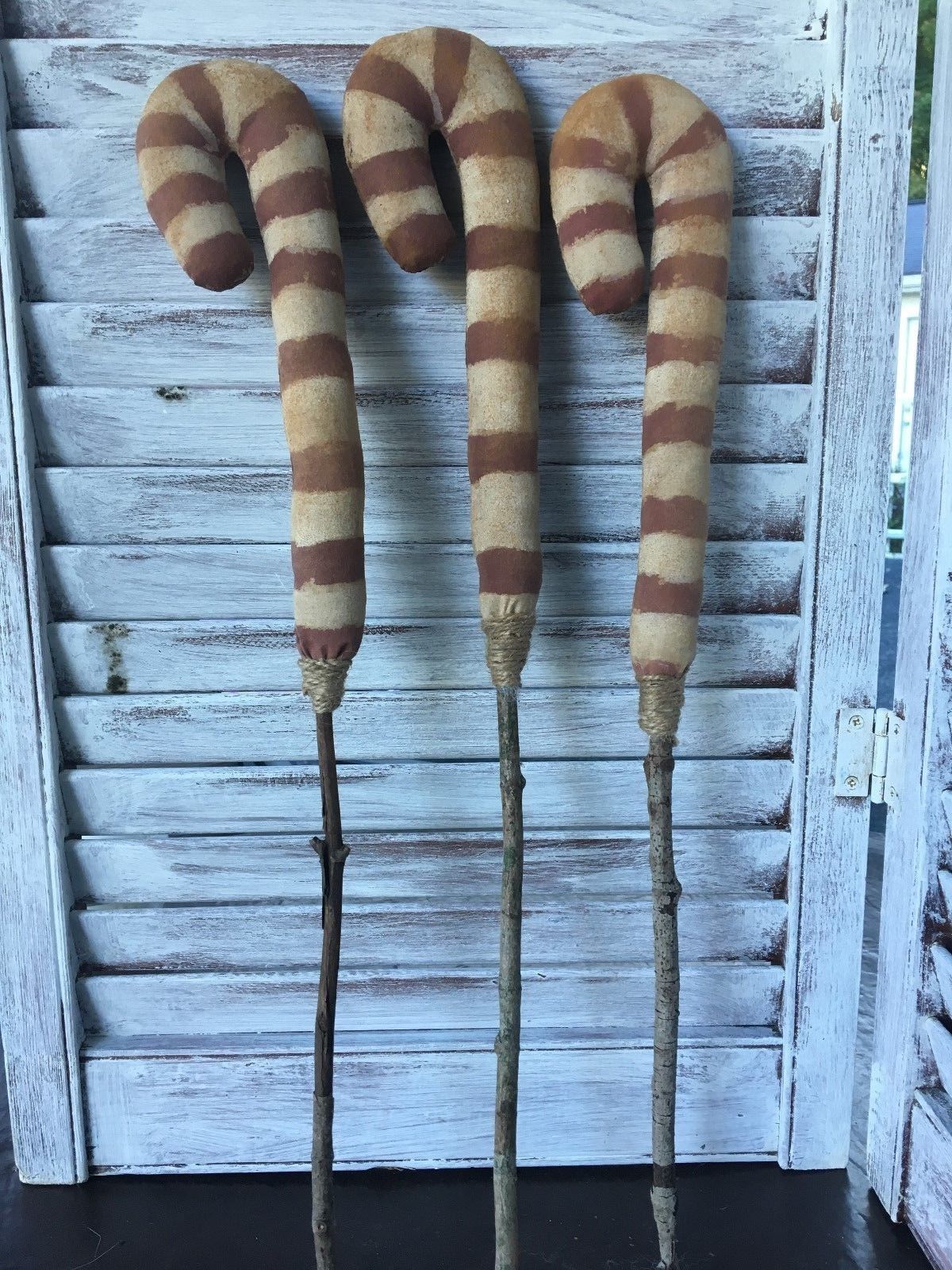 Title (ebay affiliate link): Primitive grungy set of 3 Christmas Candy cane pokes bowl fillers tuck ornie