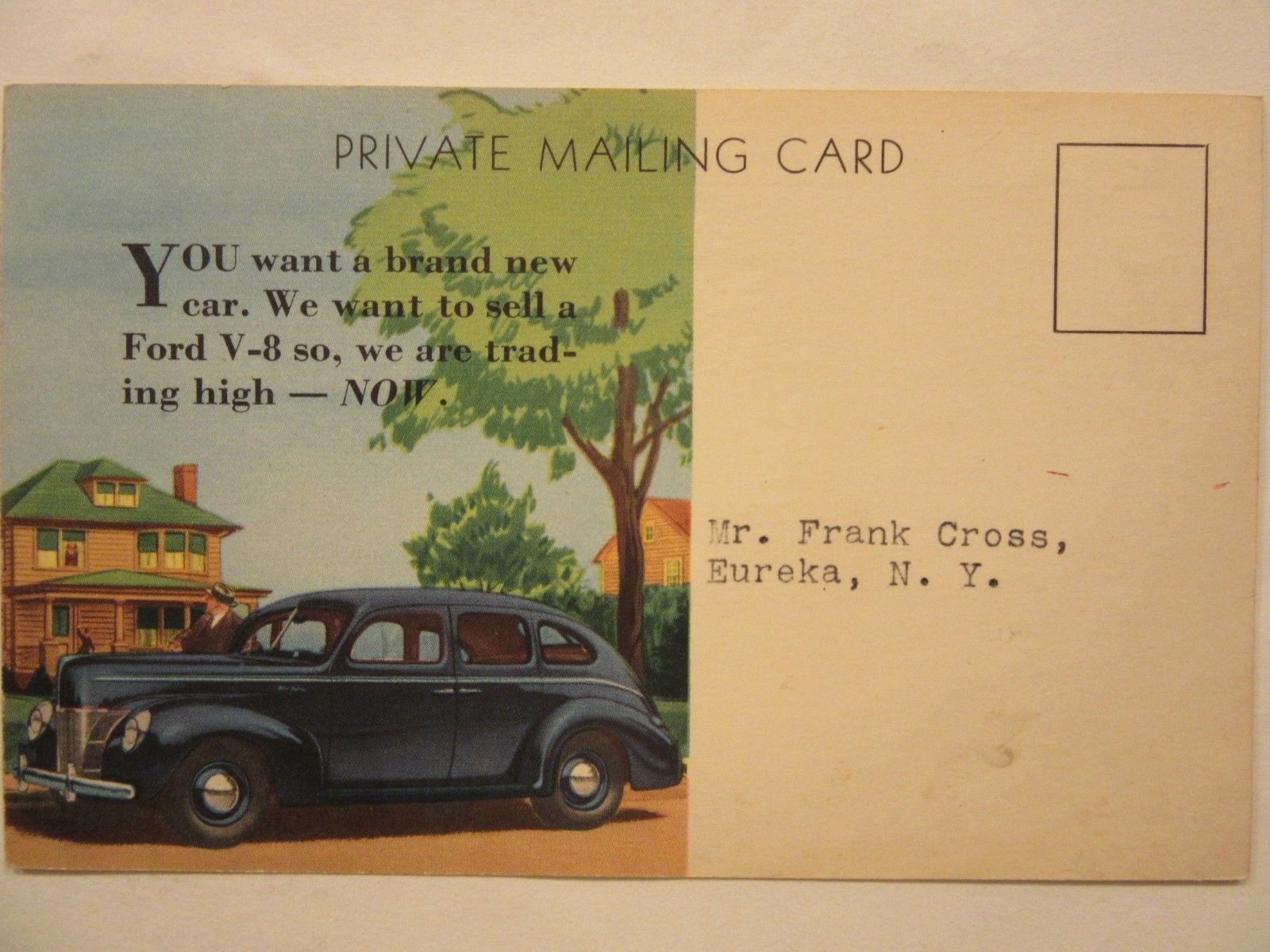 Title (ebay affiliate link): 1940 FORD Dlx 4-dr Sedan, dealer postcard, RUSSELL''S GARAGE, Loch Sheldrake, NY