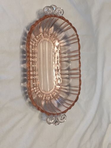 Title (ebay affiliate link): Vintage Pink Depression Oval Ribbed Relish / Candy / Serving Dish w/ Handles