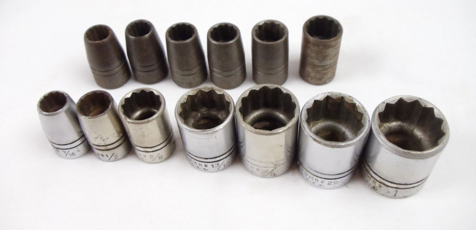 Title (ebay affiliate link): Plomb 12 Point SAE Socket Lot 1/2" Drive Chrome & Cadmium Finishes 13pcs