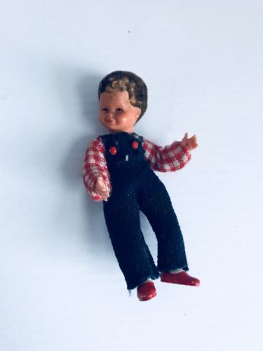VINTAGE Germany Miniature Caco Dollhouse BOY SON Antique Doll Blue Overalls