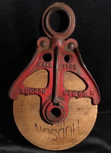 Title (ebay affiliate link): HUDSON MFG CO MALL 1133 Antique Vintage Primitive Wood Wooden Barn Farm Pulley
