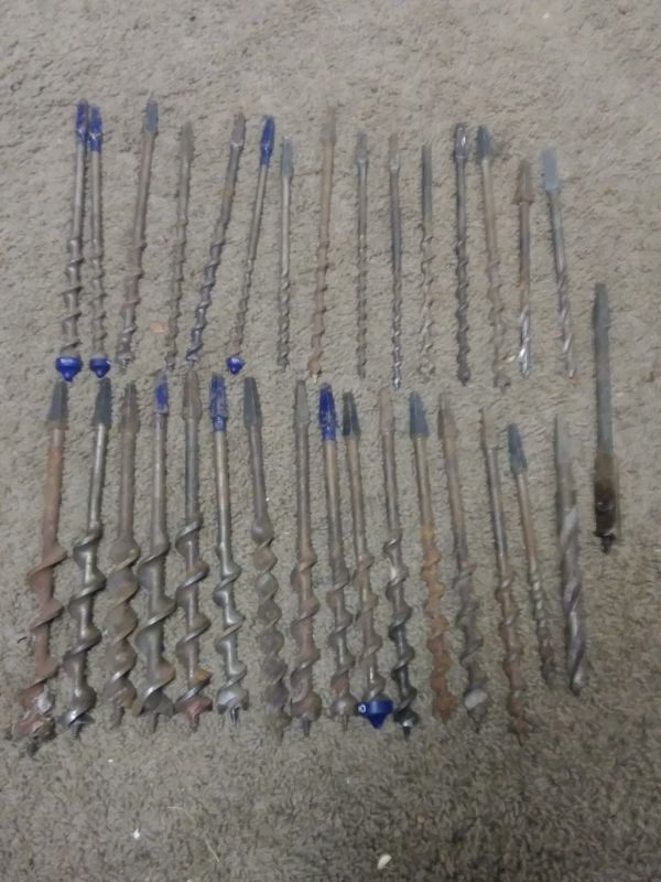 Lot of 32 Hand Brace Drill Bit misc wood auger bits ~ vintage