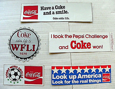 Title (ebay affiliate link): (LOT OF 5) "COCA-COLA" COLLECTABLE BUMPER STICKERS