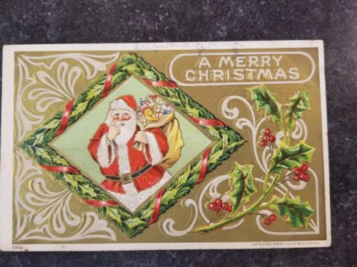 Title (ebay affiliate link): Antique Postcard "A Merry Christmas" Featuring Santa Claus In Diamond Shaped...