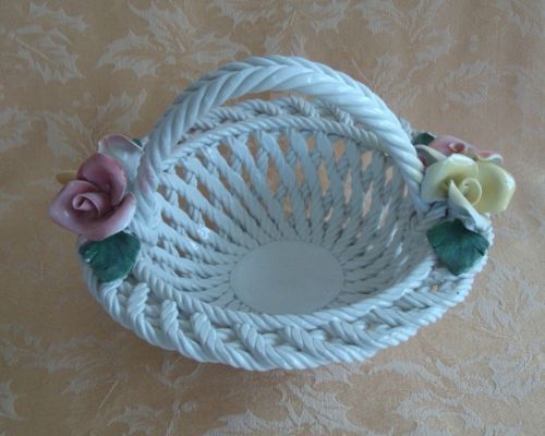 Title (ebay affiliate link): Vintage Bassano Italy Porcelain Pink and Yellow Roses Flowers Round Basket