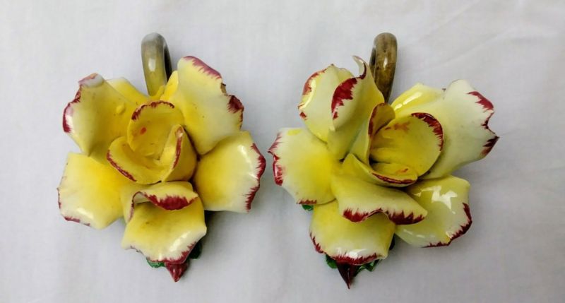 Title (ebay affiliate link): Two PORCELAIN Capodimonte Flower Candle Holders Yellow Pink Green Knick-Knacks