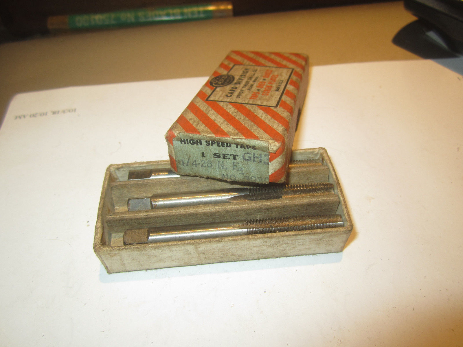 VINTAGE UNION TWIST DRILL CO. 1/4"-28 N.F. TAP SET NO. 3030 GOOD CONDITION