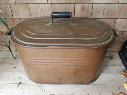 Title (ebay affiliate link): Vintage Primitive Large Copper Boiler Oval Moonshine Pot w/Lid