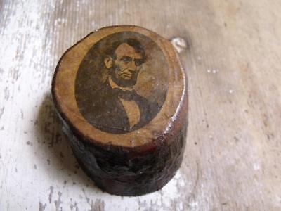 Small Old Primitive Vintage Folk Art Abraham Lincoln Print on Log Slice