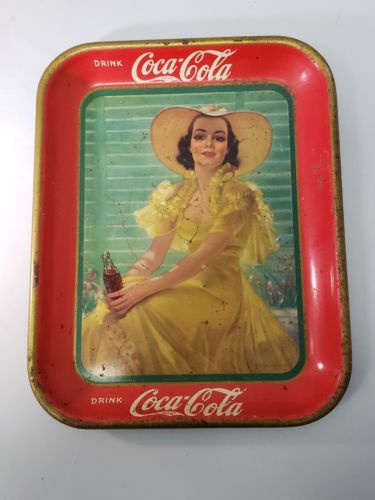 Title (ebay affiliate link): ORIGINAL VINTAGE 1938 COCA-COLA COKE SODA GIRL IN YELLOW DRESS TRAY