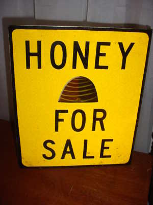 VINTAGE ALUMINUM 2 SIDED SIGN HONEY FOR SALE 1950 - 60