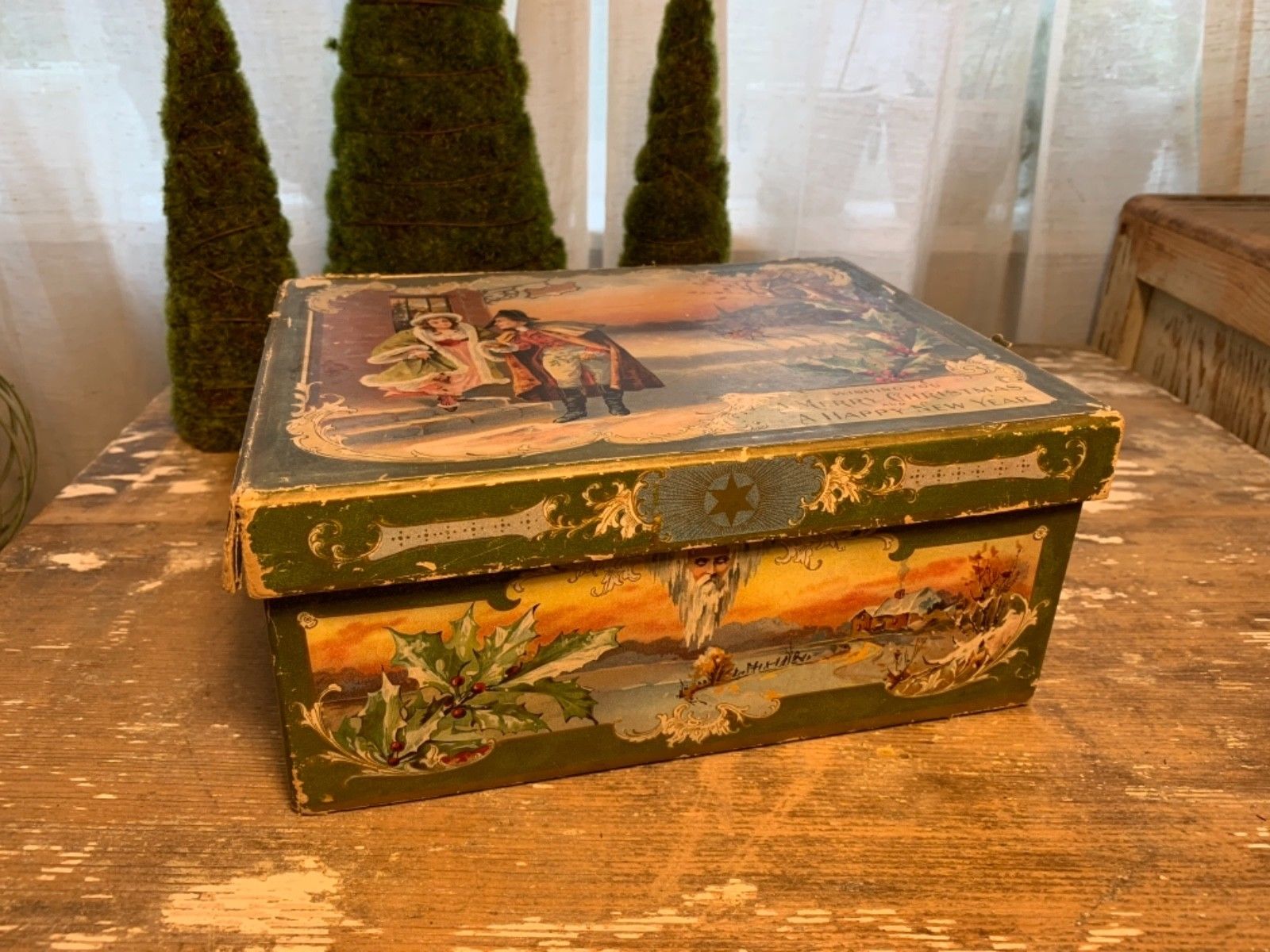 Vintage Antique Candy Box Winter Scene Christmas Lithograph