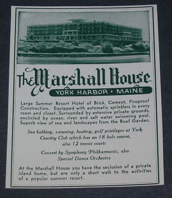 1942 THE MARSHALL HOUSE York Harbor ME. Ad