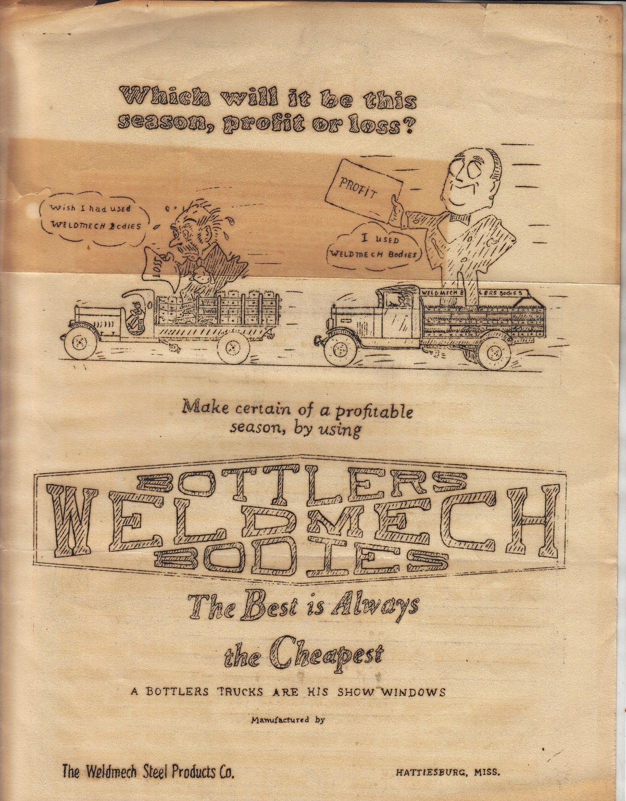 THE WELDMECH STEEL PRODUCTS MANUFACTURED EARLY TRUCK BODIES ADVERTISMENT 1920s