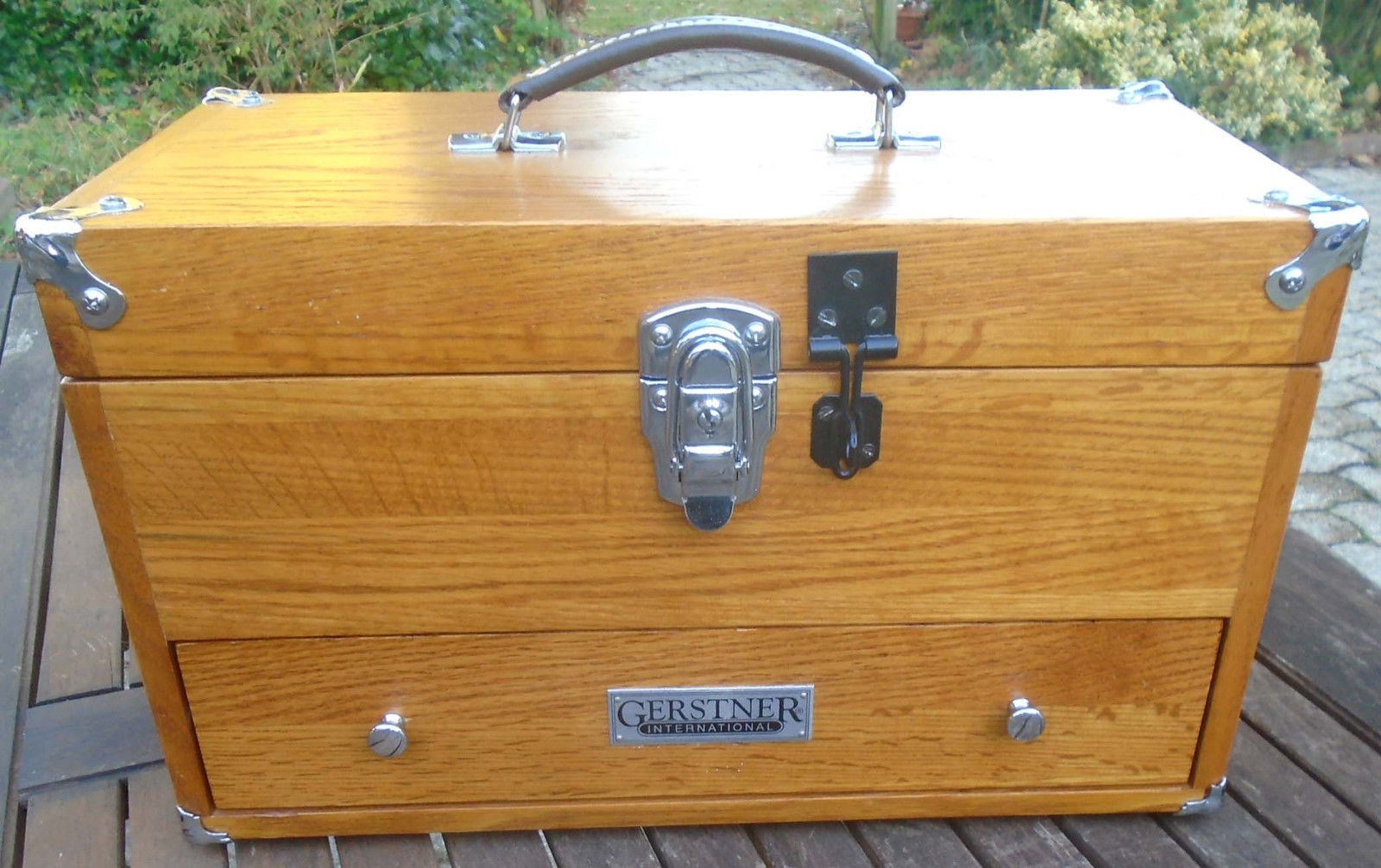 Title (ebay affiliate link): Vintage Gerstner Machinists Oak Wood Tool Box Chest, excellent except..see text