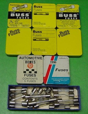 OLD AUTOMOBILE FUSE TINS & FUSES.