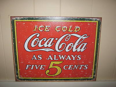 COCA COLA-AS ALWAYS-METAL SIGN-ANTIQUE STYLE AND LOOK