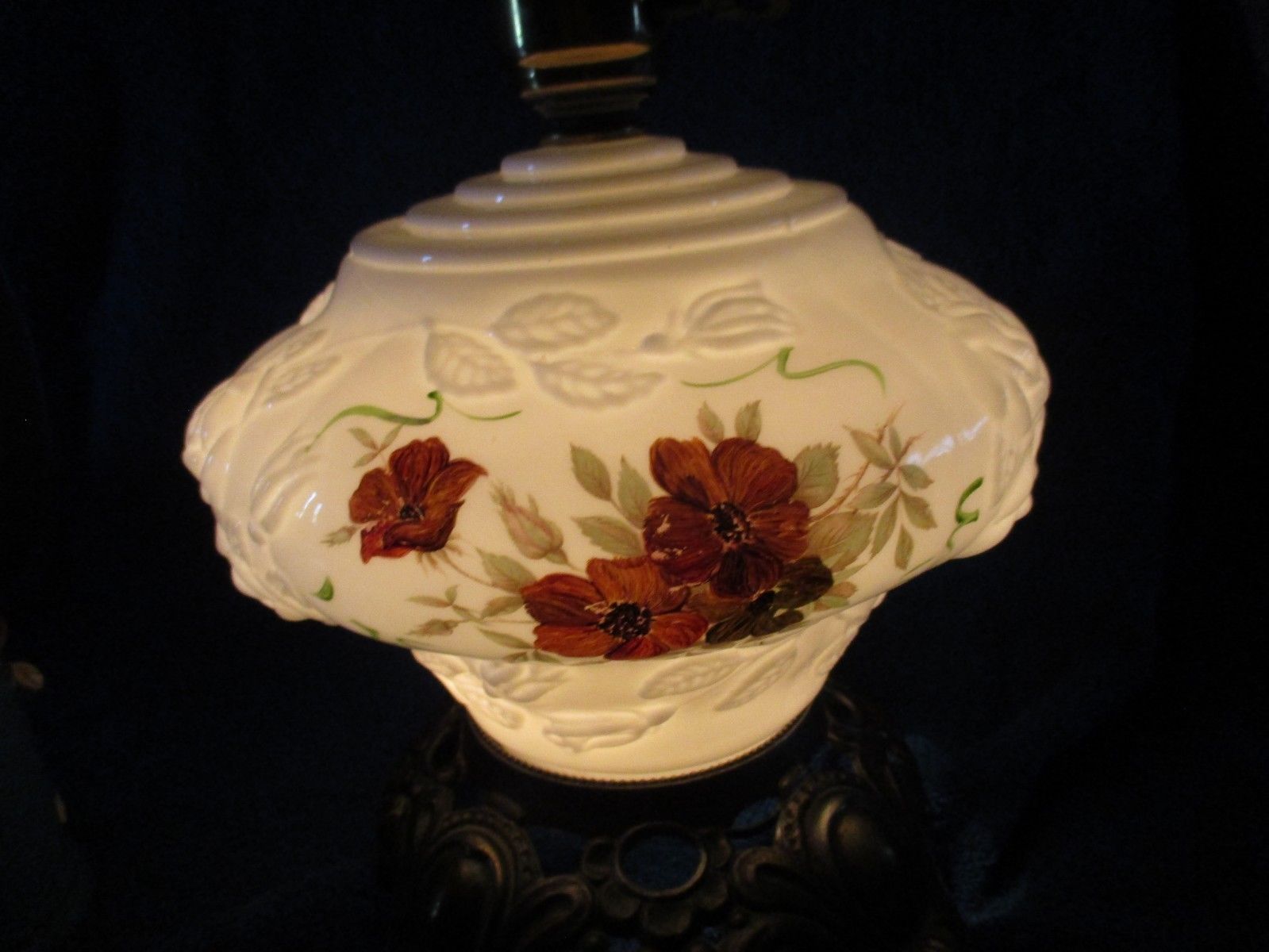 Vintage hand painted lighted milk glass electric table lamp Phoenix lamps