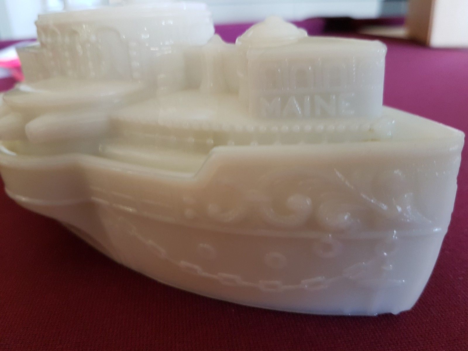 antique covered steam battleship Maine Mustard/candy/butter Dish*milk glass*EAPG