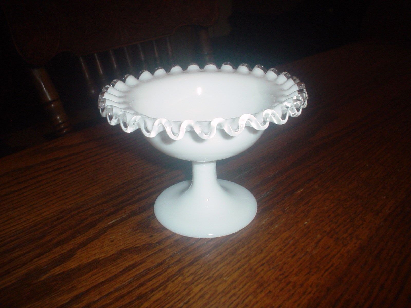 Title (ebay affiliate link): Vintage Fenton White Milk Glass Silver Crest Footed Compote Bowl Candy Dish 4" H
